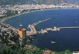 Главной достопримечательностью города сегодня является построенная сельджуками в XIII веке крепость, названая Красной башней. С ее вершины открывается прекрасный панорамный вид на живописный город, тонущий в апельсиновых и лимонных садах, чудесные золотистые пески пляжей и уходящий за море горизонт.
